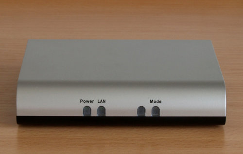Die Abbildung zeigt die Vorderansicht des Gerätes auf dessen Rückseite sich sich 2 USB 2.0 Anschlüsse für Massenspeicher, z.B. USB-Festplatten befinden. Näheres siehe "Datei Server.pdf".